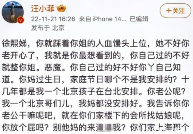 斯人已逝,小S还是要靠自己啊,不能一直靠营销姐姐博热度。 不知道您对此有什么看法呢?欢迎在下方评论区留下你的想法,喜欢文章记得点赞关注我们下期再见。 [免责声明]文章的时间、过程、图片均来自于网络,文章旨在传播正能量,均无低俗等不良引导,请观众勿对号入座,并上升到人身攻击等方面。观众理性看待本事件,切勿留下主观臆断的恶意评论,互联网不是法外之地。本文如若真实性存在争议、事件版权或图片侵权问题,请及时联系作者,我们将予以删除 信息来源: 抖音百科:徐熙娣、汪小菲、王伟忠个人资料 大S、汪小菲官宣离婚,明星与商人联手的婚姻是一桩好生意吗?.每日经济新闻.[2022-12-29]. 汪小菲大S官司和解失败,能不能回北京定居是关键,二人尚未达成共识.凤凰网.[2025-05-06]. 汪小菲“发疯文学”,麻六记赢麻了,酸辣粉两天卖万!.澎湃新闻.[2022-12-29]. “哥,今天会场来的马子,个个漂亮!”舞台剧《往事只能回味》的两岸故事.南方周末.2014-05-15[2023-07-27].